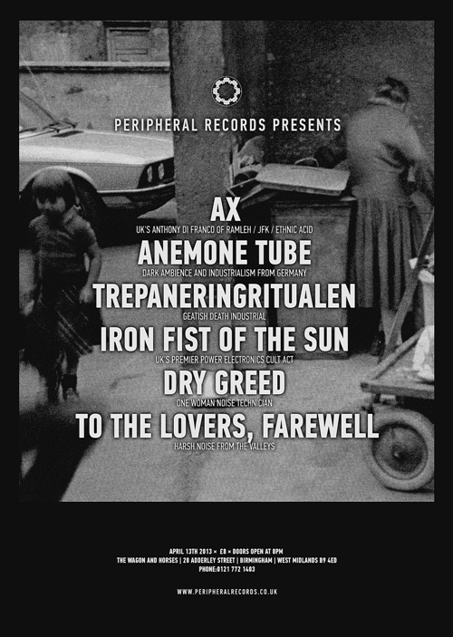 > PERIPHERAL RECORDS Presents: Ax / Anemone Tube / Trepaneringsritualen / Iron Fist Of The Sun / Dry Greed / To The Lovers, Farewell Live in Birmingham (13 Apr 2013)