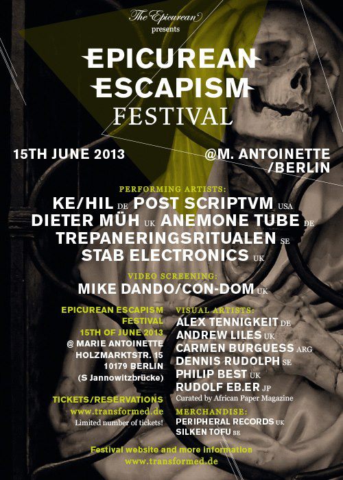 Epicurean Escapism is a festival for Escapist Music, Visual Arts & Performance, dedicated to the dark aspects of our subconscious.