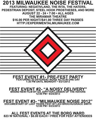 > THE HATERS, GX JUPITTER-LARSEN, NEGATIVLAND, STEEL HOOK PROSTHESIS + Others Live at Milwaukee Noise Festival 2013 (22-24 August 2013)