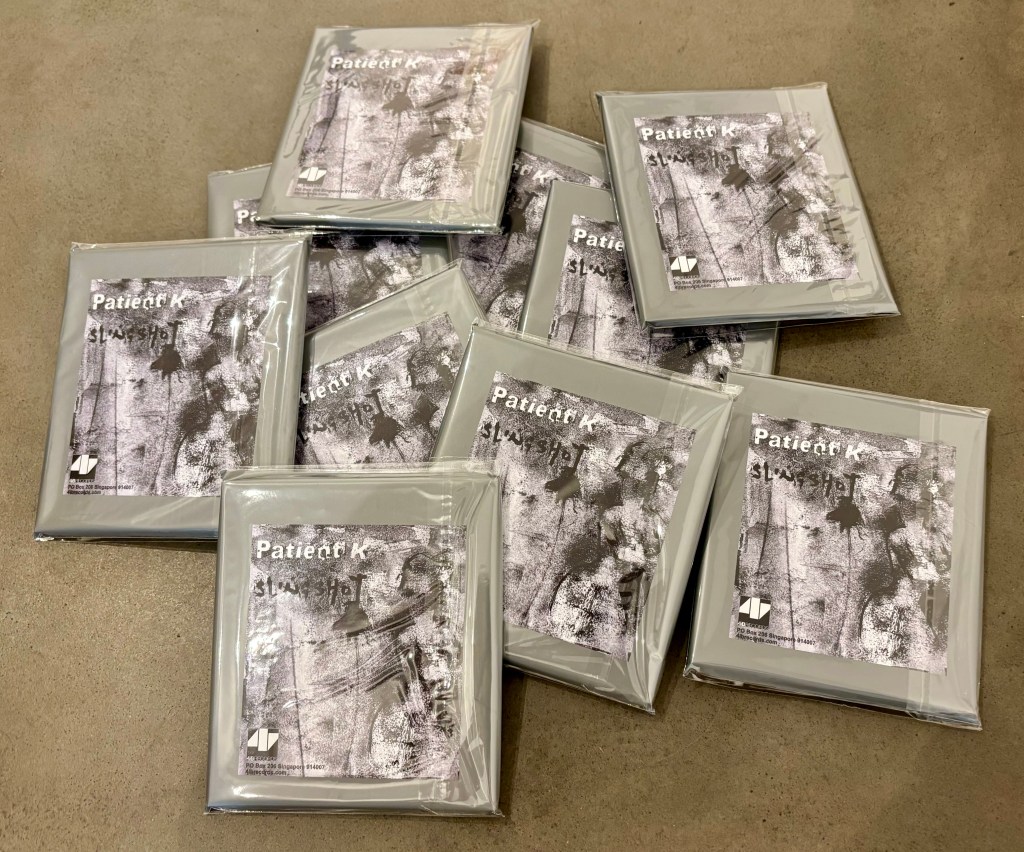 Kevin Tomkins (of Sutcliffe Jugend / Sutcliffe No More) returns with his third release as PATIENT K. Titled ‘Slingshot’, this double CD release is beautifully presented with paintings supplied by Patient K.