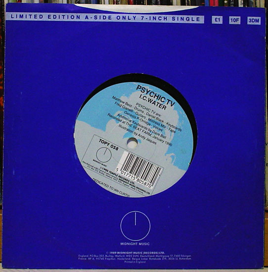 PSYCHIC TV – I.C. Water 7%22 (TOPY 058) (4iB Records)